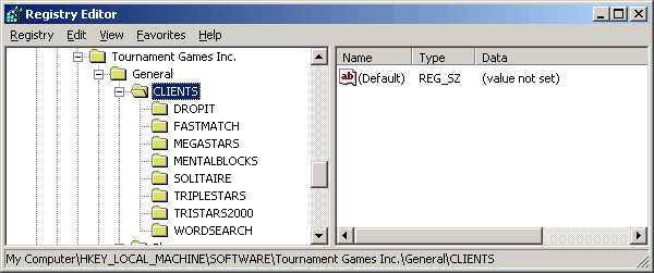 5 Click the + next to Tournament Games Inc, then General then Clients and you should see: